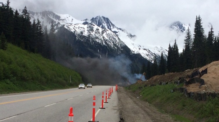 On the way up I passed a strange hazard. The construction team were burning huge mounts of cleared cedar branches, creating plumes of dense smoke that smelled gorgeous but was very difficult to see through. I waited ages before feeling the road was clear enough in both directions. Just as I started off, the guys with the diggers stopped loading fuel on and dropped the digger arm down on the fire, temporarily dousing the smoke for me. I gave them a big thumbs up and a shout-out, and they waved back.