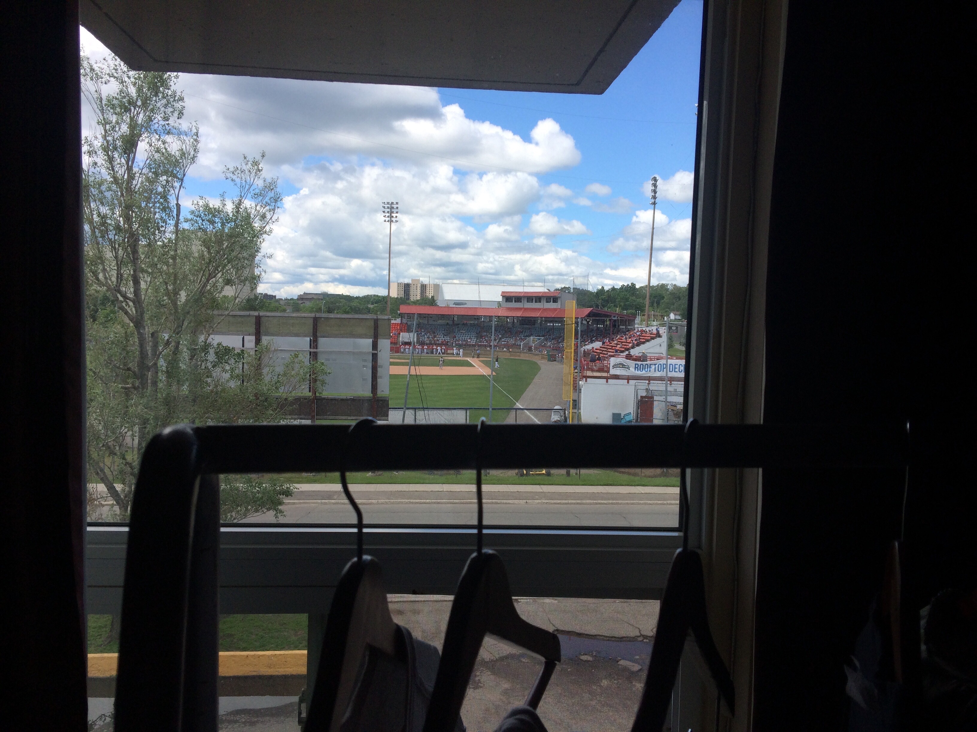 As I write, another baseball game has started up at the stadium opposite. I’m sorely tempted to spend another $10 and go back in after really enjoying the evening there yesterday. This may sound strange to a Canadian, but the vibe of the crowd is much closer to a cricket crowd than anything else. People really don’t focus on every ball, I hear lots of chat going on, people wandering in and out, and lot of “what happened?” questions to each other. At a football (soccer) match the level of passionate involvement remains pretty high throughout the game, and I imagine the typical hockey, basketball or football game here is the same. Baseball builds to moments of great tension, then it all falls through and we’re back to square one. Relaxing to watch! The view is so good from my room on the third floor, through the rail of drying clothes, that maybe I’ll just enjoy the freebie. I also have some binoculars to catch the big moments. When you’re not actually in the stadium, it looks an awful lot like just a load of blokes having a knockabout.
