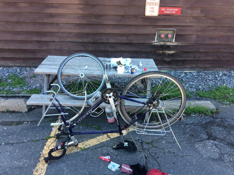 Today is a day for CrossingCanada housekeeping. I’ve gone through panniers, got rid of more than one thing, washed clothes, and given the bike its weekly service: