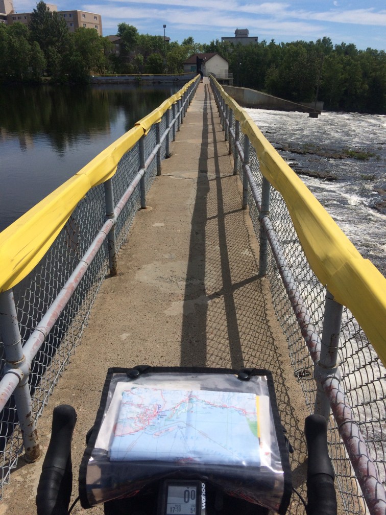 First up was a chap fishing off the narrow footbridge I was crossing to head out of town on the local cycle network, which at this point was also the Trans-Canada Trail, of which more another time. He asked about my heavily-laden bike and within a few minutes was telling me about a song he’s written and videoed for YouTube called “It’s Our Canada”, which I said I’d check out as soon as possible. (As promised Richard, I’m including a link here to your song)