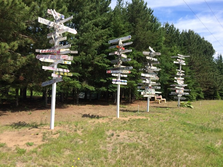 The road out of Thunder Bay was green and very nice nice for cycling, and as the houses thinned out it became clear that this was country cottage territory. It’s hard to say what the signs are, but the garden and its furniture are a clue. Also the immaculate condition of paintwork. In the air was one of the nicest smells you can encounter anywhere in the world – the smell of freshly cut grass. I think someone woke up very early this morning and cut his lawn, then word spread like wildfire to all the neighbours until the whole of the north shore of Lake Superior had decided that this was the day to do it. The smell was outrageously rich and welcome in the warm morning air.