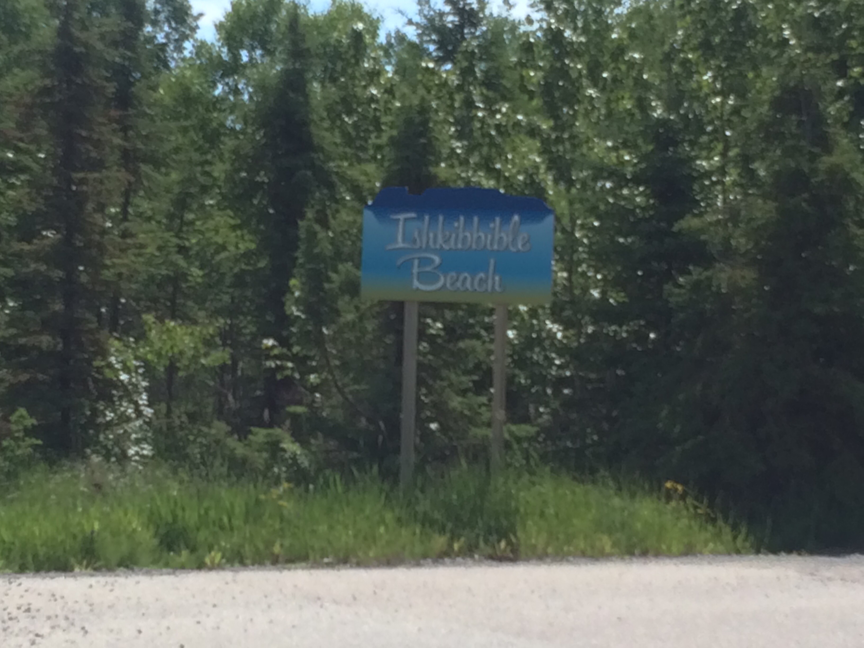 I’m guessing that this protest has been there for a while, predating the more PC and respectful “First Nation”. I saw a beach name the other day that I meant to pass on to Susie, but forgot, so I’ll do it now. Almost since I’ve known her she has sung a song that her half-sisters Selena and Joanna taught her on one of her childhood visits to Canada. I can hardly bring myself to write it, since she now sings it mostly to wind me up. It’s a kind of nonsense song, or so I thought, and it begins with a call-and-answer “Cumalada cumalada cumalada vista” and gets to the line “Ishkibible-oten-toten-mobo-oh I can’t remember the rest”. Check out this beach I passed outside Thunder Bay the other day Susie, Selena and Joanna: