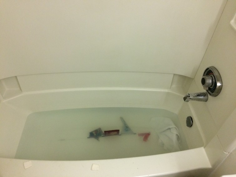 The flags finally got a proper clean yesterday, left to soak for a while in the bath. They came out looking, well, similar but slightly fresher. I do hope that they all make it back home. (Note the floor towel used as a plug due to the absence of a proper one)