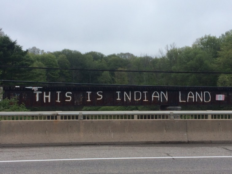 Almost as soon as I’d left SSM, the peace and quiet returned, with lots of river views, forests, and houses set back amongst the trees. As I crossed a long bridge, I saw this painted on the railway bridge running alongside: