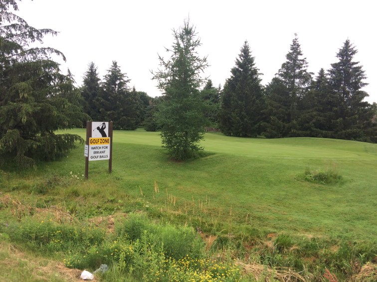 (The pedant being me, by the way). You can’t blame the golf ball, there’s nothing wrong with them and it’s not their fault where they get hit. It should read “Watch out for totally innocent golf balls hit by errant golfers.”
