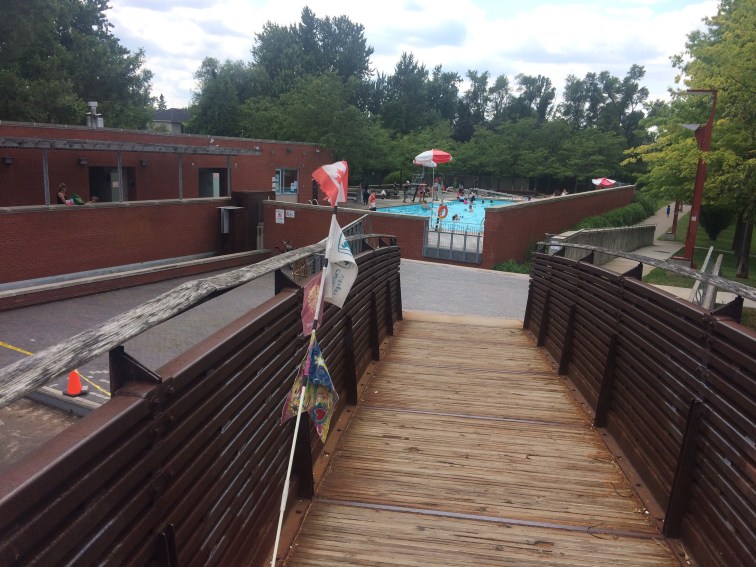 By the time I approached Morley’s house I was feeling very hot and sweaty, but had a sudden and helpful flash of memory – when our kids were younger we took them several times during hot summer weather to a lovely local free swing pool in a park nearby, so I made a slight detour, parked the bike, showered, swam in the lovely cool water, changed into some normal clothes and headed up to the 14th floor for a late lunch with Morley and Dinah.