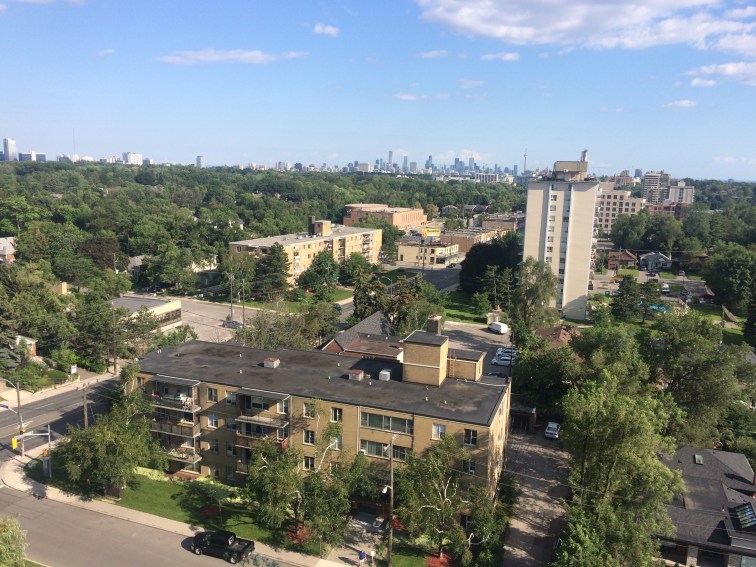 (We always get a thrill from the first glimpse of the CN Tower and downtown Toronto from Morley’s balcony)