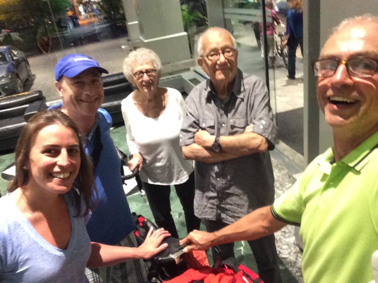 My mission this evening was to round up all three of the Markson brothers on my bicycle, in the order that they appear on the way downtown to our apartment this week. So last were Jerry and Mayta in Yorkville, who welcomed me with supper (I should apologise again for thinking that the large bowl of pasta was all for me, when in fact it was for all of us – I’m still laughing at the way Mayta realised this as I was preparing the whole thing just to my taste with cheese and pepper whilst they waited their turn) We looked at maps, discussed plans this week and talked more about this vast country of theirs.
