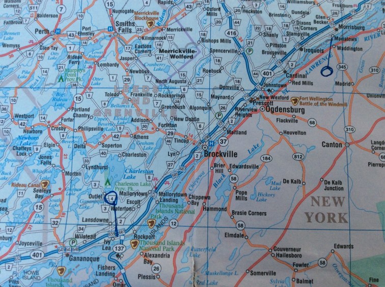 The Thousand Islands, where I’ve spent these few days alongside the St Lawrence River, were originally a mountain range, extending from Algonquin Park in the north down to the Adirondack Mountains in the US to the south, but all that is left to see now is the granite bedrock. They were ground down to a low range of hills by the action of glaciers, and became swamped by the flooding of the St Lawrence River, leaving only the hilltops, which are the Thousand Islands. The river used to be the only passable route into Canada, back when all the land was nothing but endless forests. Outposts sprung up along the way to supply ships and store goods and so on, and gradually Canada as it is today began.