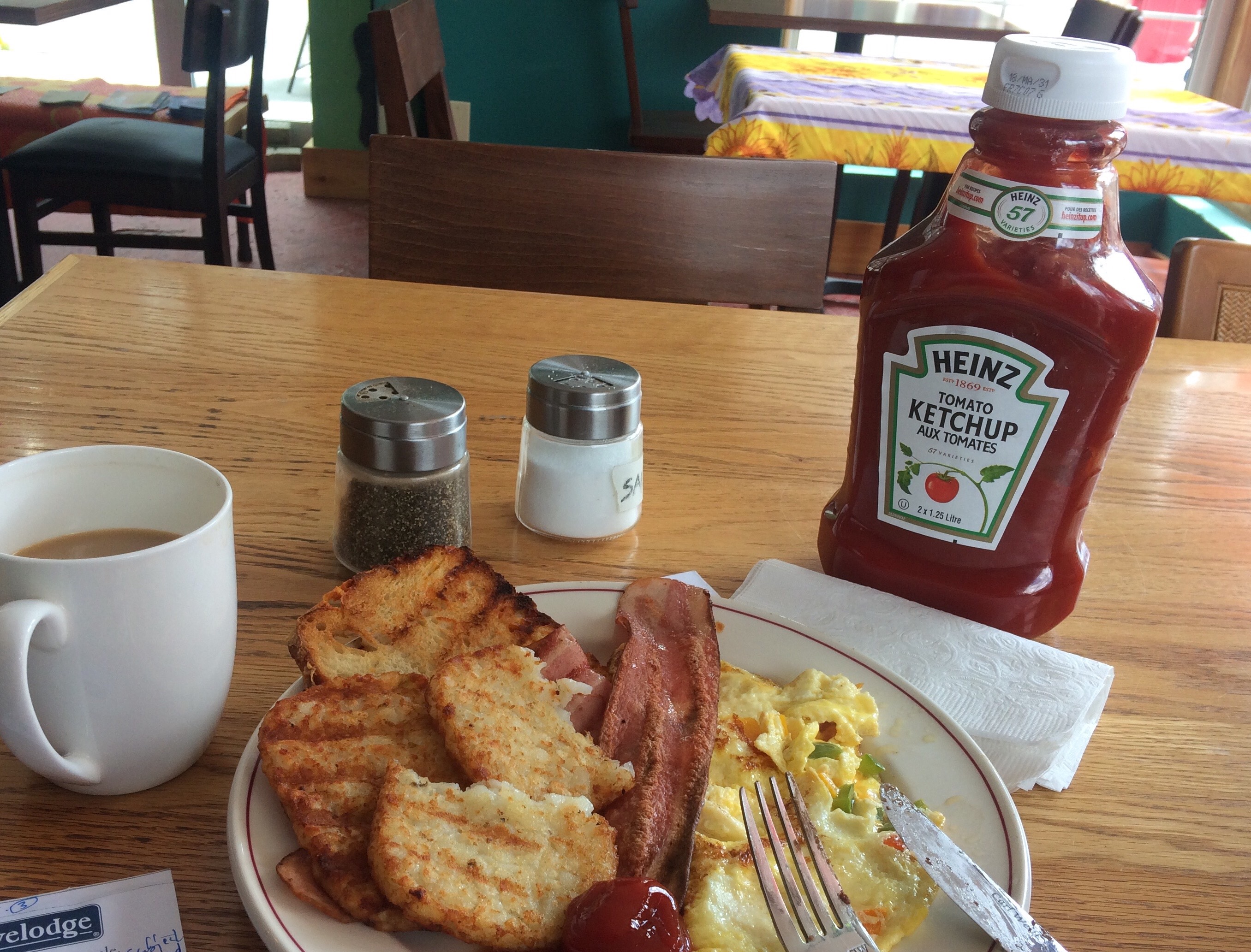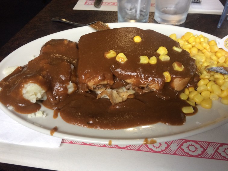 My meal, hamburger with mash, was the ugliest and most unrecognisable plate of food I’ve ever seen. Luckily it tasted pretty good though, if you like gravy. Most of all I liked the air conditioning. Today was an absolute belter, especially the last stretch to my campground.