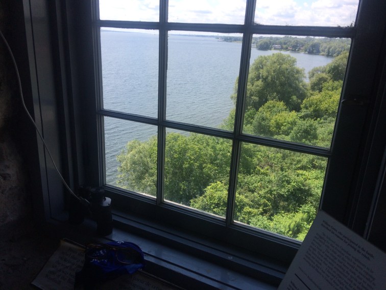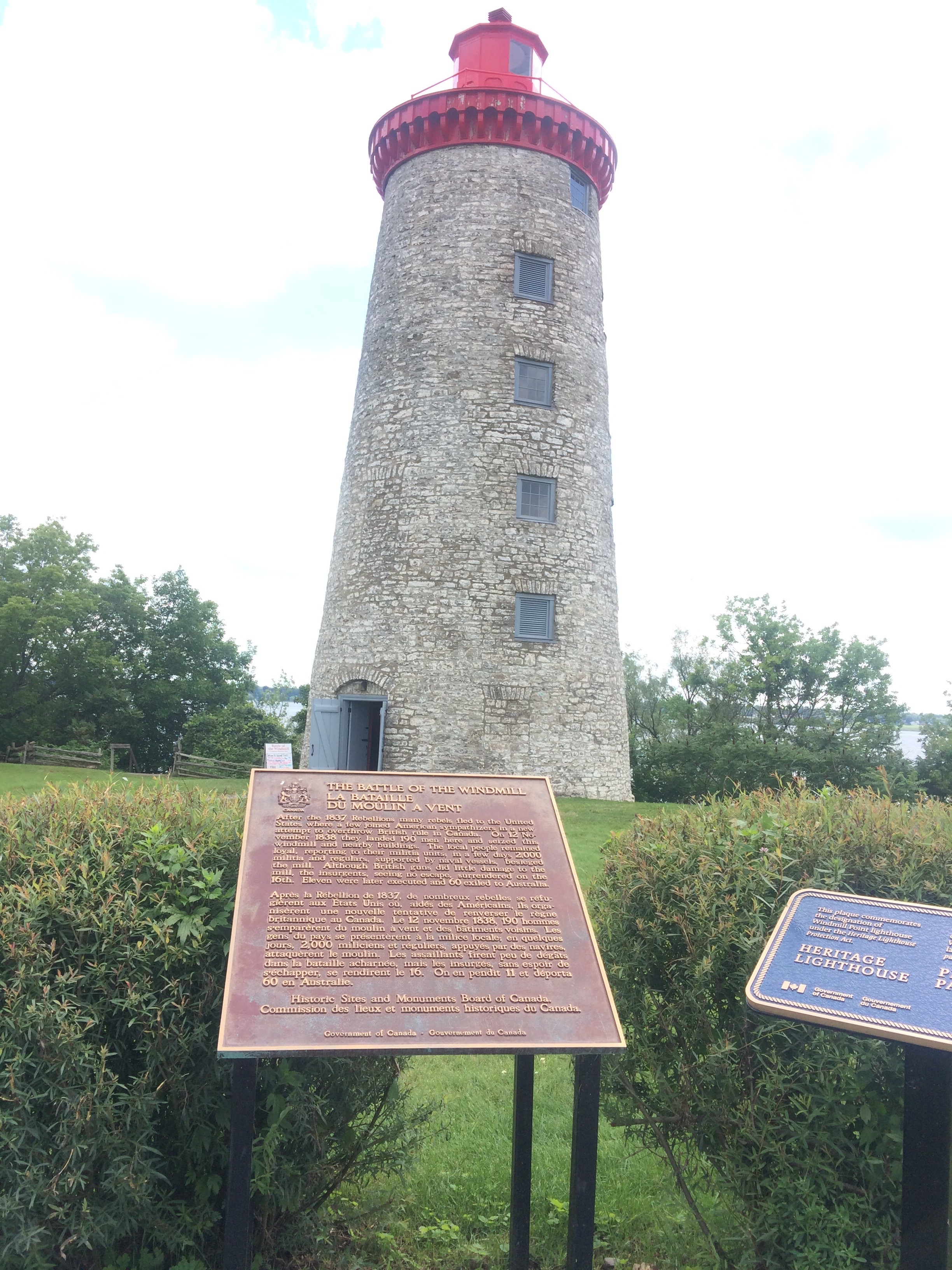 The British, keen to keep Canada, fought off a big insurgence from the south in 1838, made up of rebel Canadians and sympathetic Americans who were convinced that the Canadians across the river would rise up and support them. It never happened, and, after a desperate battle centred on the Windmill/Lighthouse in the picture, the rebels were defeated and executed or deported to Australia, after being held and tried at Fort Wellington up the road.