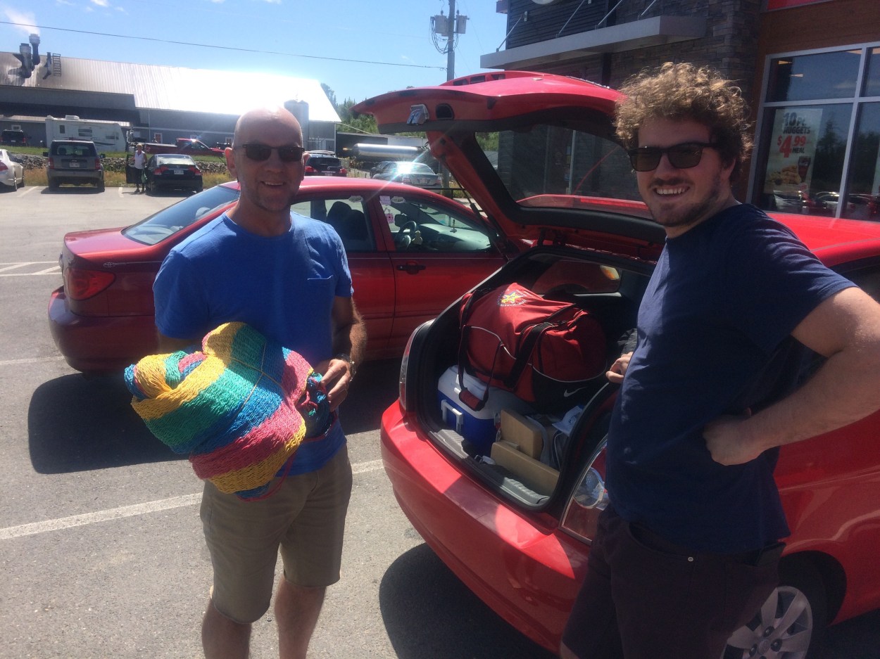 As I left the Subway, a guy asked me “Aller loin?”, and my “um…” reply was clearly English enough for him to switch languages! His name was Zoël, and he had cycled across Canada himself a few years ago. It was one of those encounters where you seamlessly shift from small talk to subjects you’re both really interested in, with out even noticing. He works for a Mental Health organisation called L’Arche, and spent a long while in Vancouver before shifting to Montreal. He’s actually from New Brunswick. We got talking about his work and also my charity, and when I mentioned Choluteca in Honduras, where I sponsor a village, his eyes lit up. “Come and look at this!” he said. His son had appeared by now so we all walked over to his car, where from the boot he produced a hammock – “A hammock from Choluteca!”: