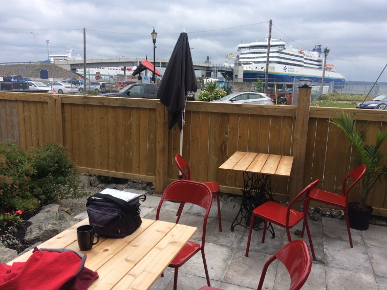 It was a nice big lounge, with a bar and a dad-and-daughter country music duo playing on the stage once the ferry got underway. “We’ll be here ’til eleven, so kick back!” Cue some country classics, original compositions from the daughter (not bad) and a less great medley of Elvis numbers. (As they headed towards the end of their last of three sets, I looked up from my book to see that a couple had been doing the ol’ mum-and-dad-dance, rocking gently around together in the middle of the half-empty lounge, in the middle of the Gulf of St Lawrence, to a slow, maudlin number about being unlucky in love. It was a very touching sight, from a couple who looked to me like they’d probably been pretty lucky in love.)