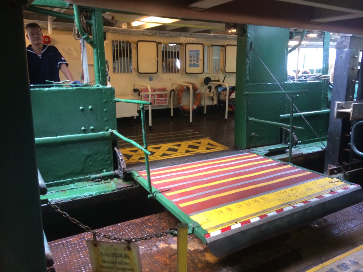 Research is all very well, and it certainly passes the time when you’re awaiting the start of a new trip, but you have to be ready to admit it can also be a wasted effort. According to website, passenger+bicycle from Tsim Sau Tsui to Central, no problem. In reality, bikes not permitted on that route. Everyone was very helpful, and an official led me to the alternate route over to Wan Chai instead, where he told me to board by the Lower Deck. I was the only passenger.