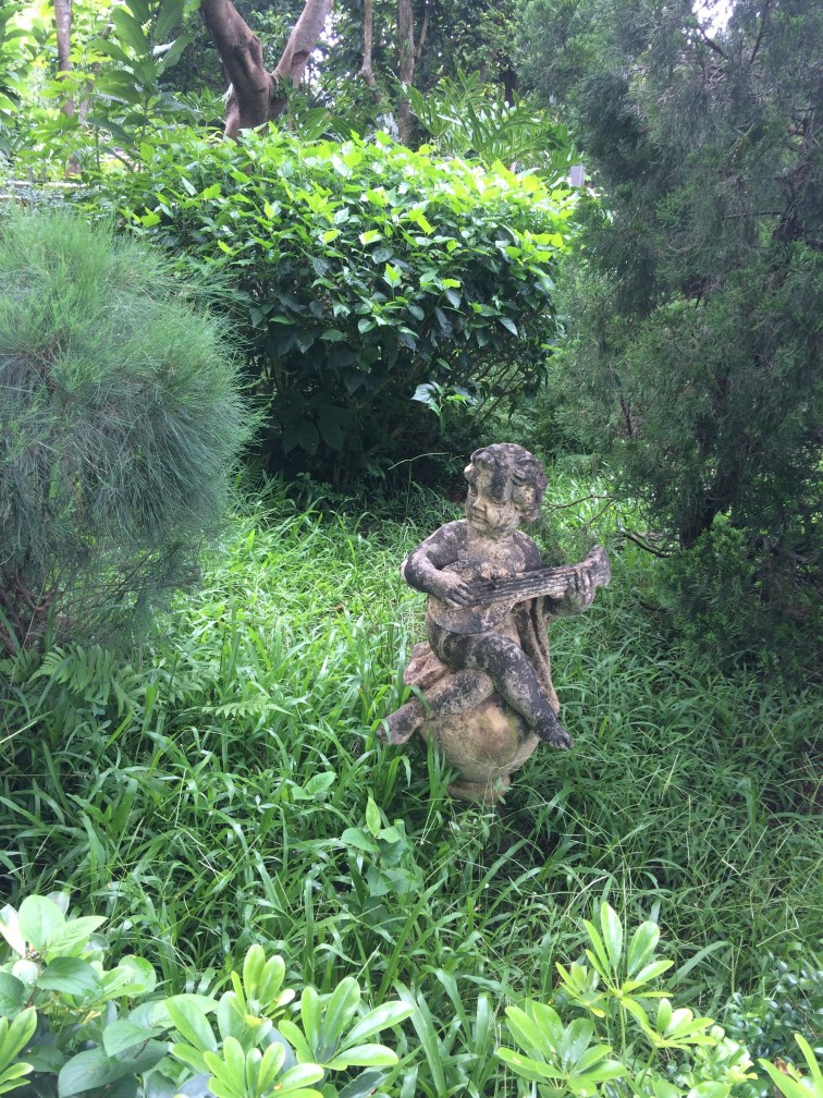 After this the path led to an extended wooden walkway that took me up to the top of the only peak on the island, but never felt even remotely wild, just lush, with large butterflies everywhere, lizards darting away from me as I approached, and dragonflies hovering above the trees. I did come across one very welcome surprise hiding in the undergrowth: Ma Tan was apparently the home of the earliest known Neolithic Ukulele Club in the Pearl River Basin.