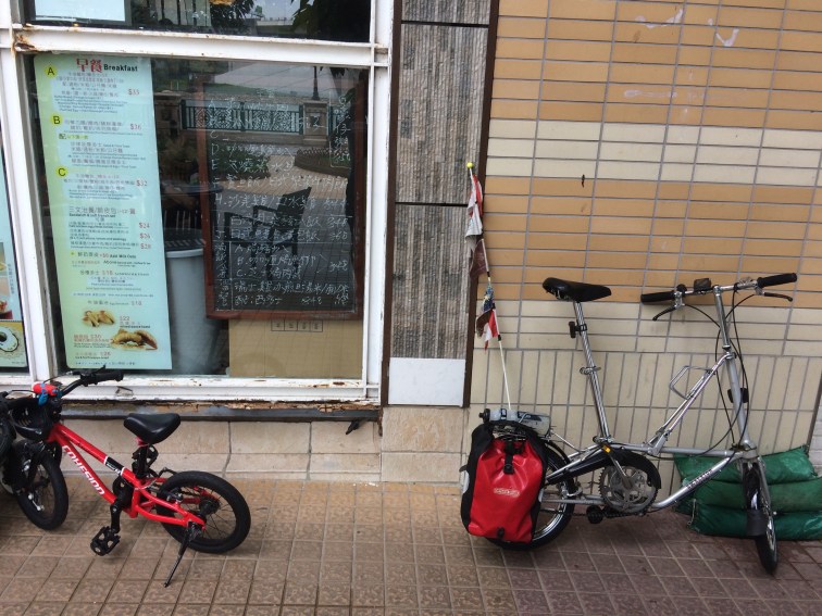 This morning, after saying goodbye to Susie who was off for her first day of examining, I carried my bike downstairs, unfolded it outside the hotel as arranged with Joyce, and handed the bag over to King at the Concierge’s desk. He asked where I was going, gave it some thought, and then said “Hmmm, that should be ok”. He reappeared outside as I was sorting myself out, and presented me in the traditional polite two-handed manner with a guidebook for hiking and cycling in Hong Kong. I thanked him profusely and he wished me good luck on my journey today.