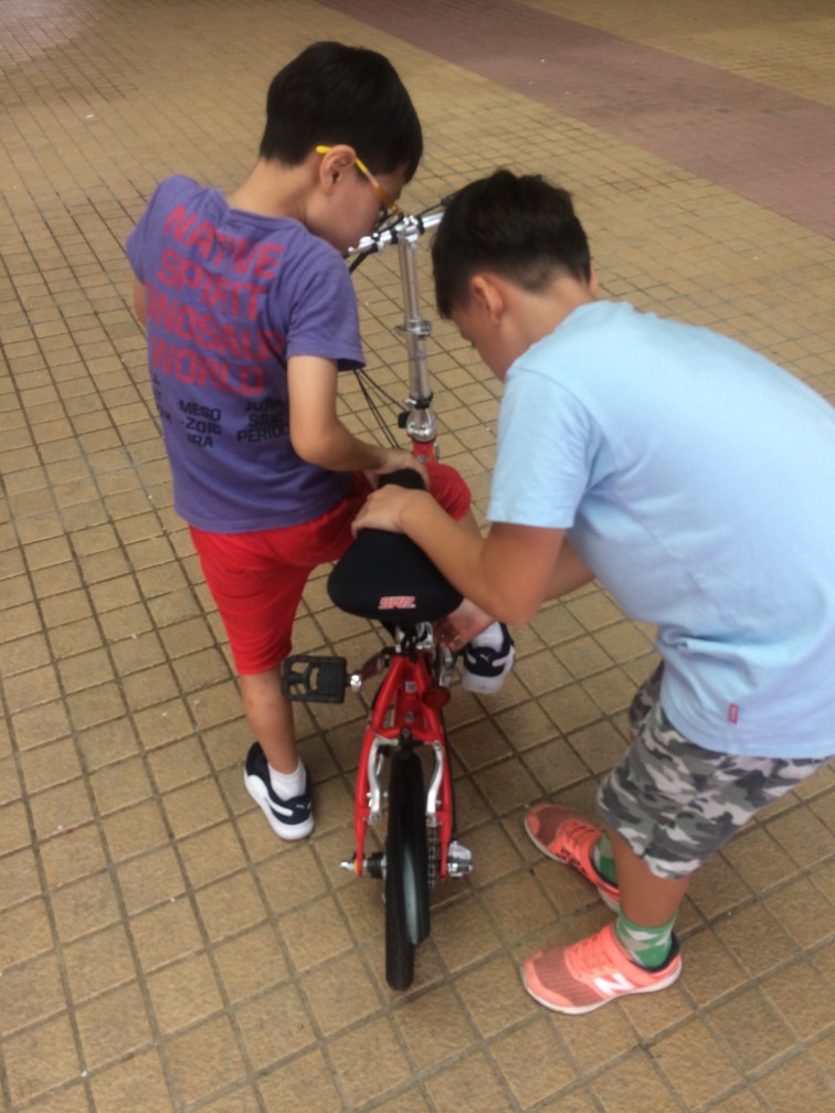 Several children saw my bike and came over to ask me to fix various problems they were having: seats sliding down, bell not working etc. We set up a kind out temporary bike workshop, and they scooted off on test rides around the pier to see if I’d done a good job.