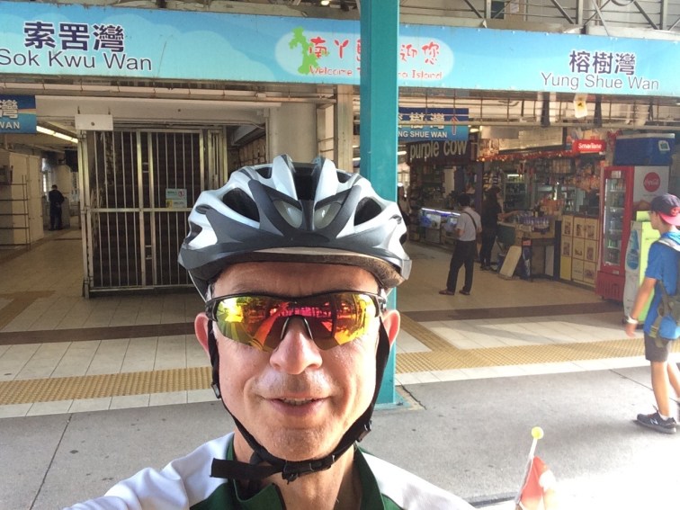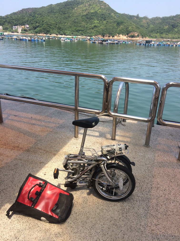 As I struggled with the drips of hot syrupy butter that we’re running off the bag and down my arm, the lad you can see in the picture came running over to say I needed a separate, cash-only bike ticket. At the kiosk the lady looked at my bike and said “No bikes to Sok Kwu Wan now. Small boat.” At first I thought that I would have to head north on the bigger boat instead, missing out Sok Kwu Wan entirely. Then a thought struck me. “How about if I fold up my bike?”, I asked. “Aaaaah”, she said, frowning, as she leant forward until just her nose was poking through the gap in the glass, trying to get a look at my bike. “Show me!”, she said. 12 seconds later (at least, that’s what the ad says, it may have been a bit longer) I presented my folded bike for her approval. “OK!$26 please”, she said with a smile, and I was waved aboard. Just to say it again, that’s about two quid. These ferry prices are crazy.
