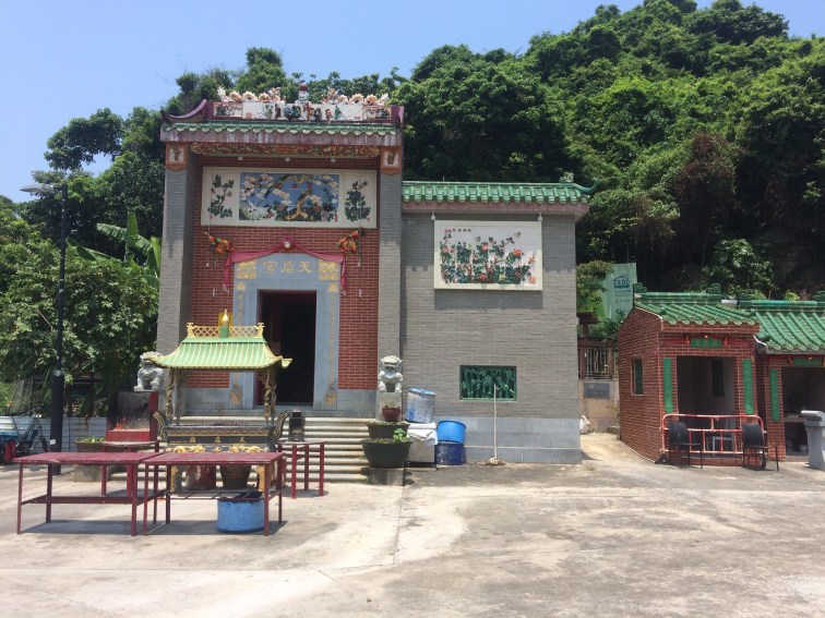 Back at the pier I cycled slowly through all of the restaurants, getting cheerful waves and offers of a table as I went – “Don’t cycle, have a beer! Ha ha!” – and came out at the Tin Hau Temple by the sea. Tin Hau is the Goddess of the sea and fishermen.