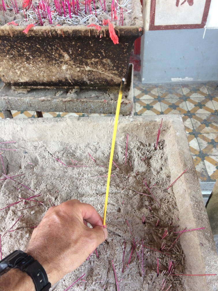 My remaining problem was this: I was stuck on an island in the South China Sea with HK$3 in change, a photocopy of my passport, a bike and pannier, some water and a packet of Haribos. I asked Officer 2156 if he had any idea whether the ferry company would let me travel on a promise and my hotel address? He smiled at me, looked at his buddy, opened his wallet and took out HK$40 in notes, which was enough to get me back to Central at least. I tried to refuse it, but he was insistent, and said it “It is not a problem. Just come one day soon and pay it back”, waving his hand behind me. I thanked him as warmly as I could muster and left. It was only later that I wondered whether he was waving towards the police station, the island in general, or the temple.