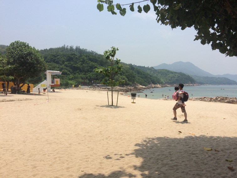 I now had the means of getting part-way back, but there wasn’t a boat for a while so I decided to continue with my original plan for at least a bit. My heart really wasn’t in it at first, especially since I now had no money for lunch. I’d managed to cover 5,000 miles over three months without losing anything more than raincoat, but now I was cleared out on Ferry Day 4. I cycled quite hard along the paths, probably in frustration, but passed so many smiling and friendly people that I tried to calm down and put it behind me. The path lead me to the beautiful Hung Shing Yeh Beach.It was midday now, so I pushed on having promised myself a swim on the way back. I wanted to join up with the route from yesterday where I stopped at a Pavillion Lookout. I stopped there once more and listened to a large group of English-speaking boys of many nationalities, who were accompanied by two Chinese counsellors/guardians, moaning about how tough the walk was and wishing their mums hadn’t signed them up for this week of activities. “Why are we even doing this? It’s crazy! I’m so hot!”, and so on. The counsellors were a picture of patient resolve, telling them to buck up, stop moaning, and help the younger ones. “15 minutes!”, announced one of the adults. “Whaaaat? To eat?”, said a boy. “Yes, it’s plenty”, said the man, to yet more moans mixed with laughs from the boys.”Man, I cant wait til the beach”, one of the boys shouted, and I realised that we would end up there at about the same time.