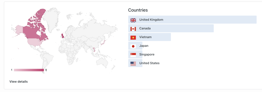 I love the page of my blog that tells me which countries have visited the website that day! Here are today’s border-crossing stats, and if you’re one of them, thank you, and do let me know what you’re up to out there (who’s in Vietnam??)