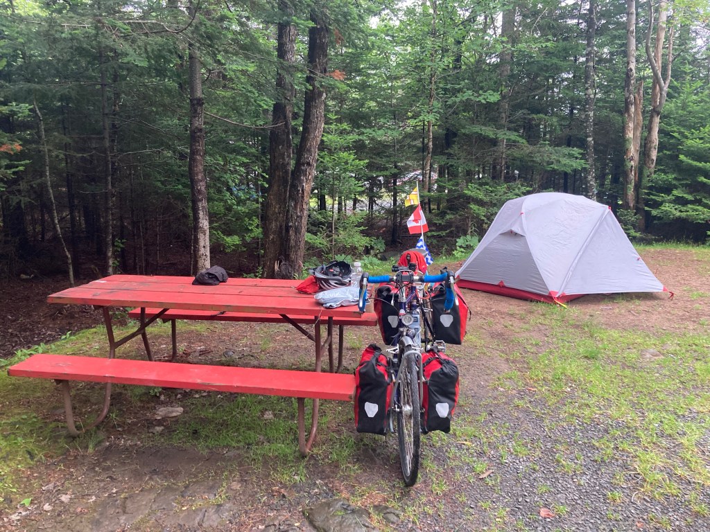 So now I’m all set up at my first Canadian campground for a few years, I’ve swum, cooked, eaten, washed up, and listened to the sound of all the excited kids who have mostly arrived here today like me, because today was the last day of school right across Canada, and they now have 65 days of freedom (this info came from one of the kids messing about at the outdoor pool where I swam.) And tomorrow it’s Canada Day!