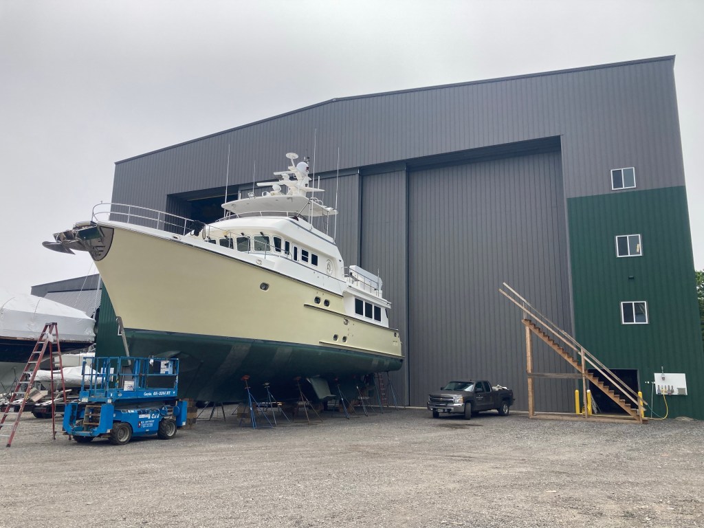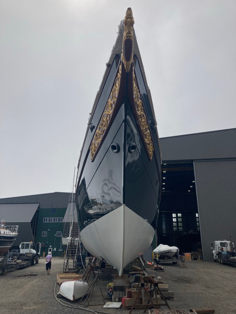 I was offered a lift to the Farmers Market In nearby Belfast by Sandy, who lives and works on site during high season, so we set off together at 10.30am. Sandy is English but also lived in Australia, and had a long career involved with sailing, and travelled extensively all over the world before settling in the US. She took us via the shipyard in Belfast, where she had some business to attend to, giving me the chance a look at the collection of impressive vessels under repair:
