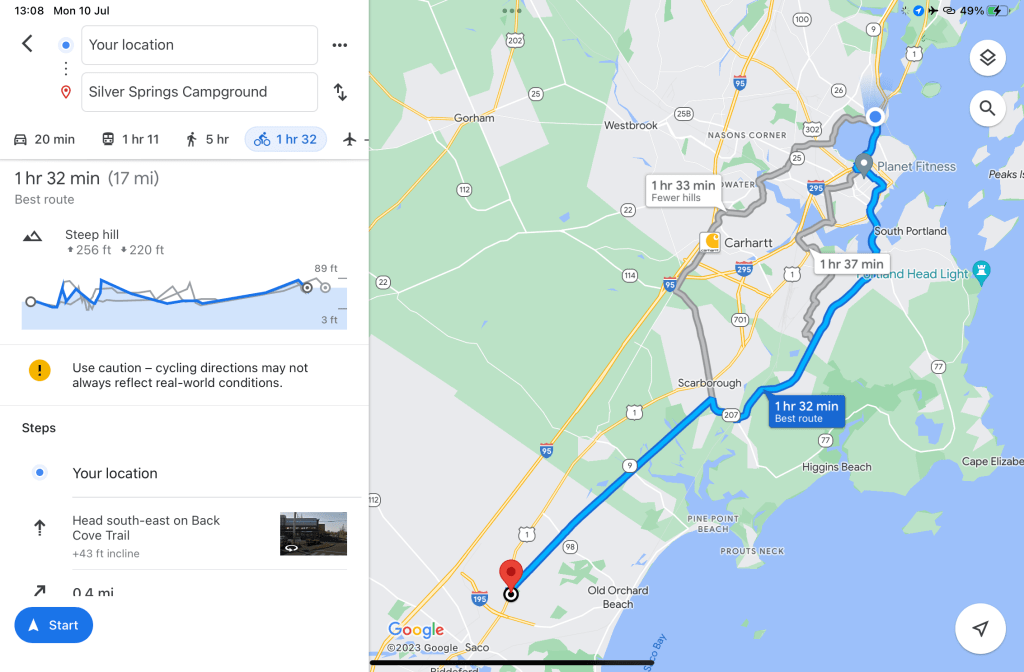 And here’s the sort of thing I spend time sorting out whenever I make stops like this one. Checking that I can actually get to where I want to be!