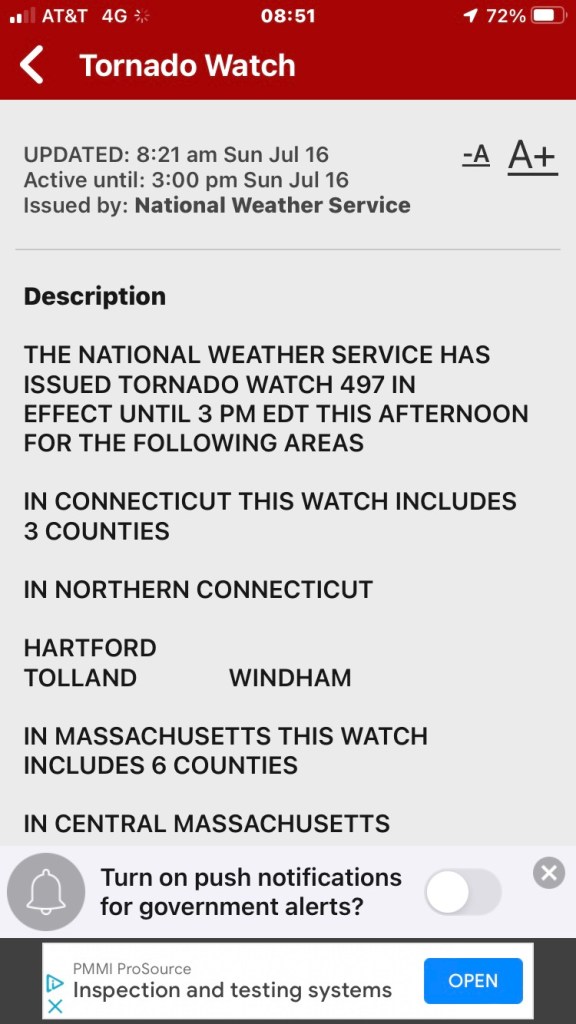 You’re probably tired of hearing that it rained during the night, but, well, so am I! I also picked up a new level of weather warning to drive home the unusual nature of the summer weather here: