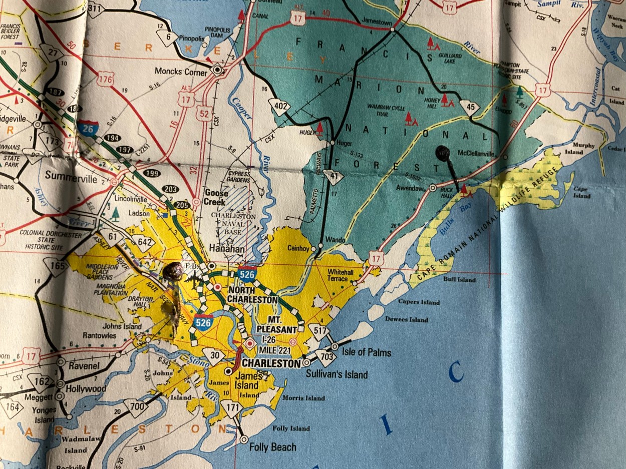 A QUICK THOUGHT ON HEAT: The US, or this part at least, really isn’t that much hotter than, say, Rome in August. It just that the sheer scale of this country makes for so many exposed places when you travel. Italy has sorted this out, by creating shade over thousands of years. I thought about that a lot today in the closely-packed, tree-lined lanes of Charleston, and the blissful shade created there.