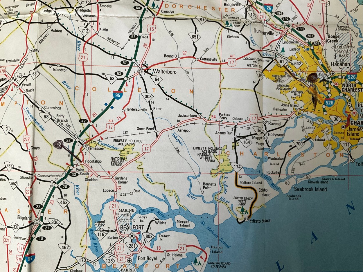 (Most of the roads I took today aren’t even on this map. The railway is, leading to Yemassee)