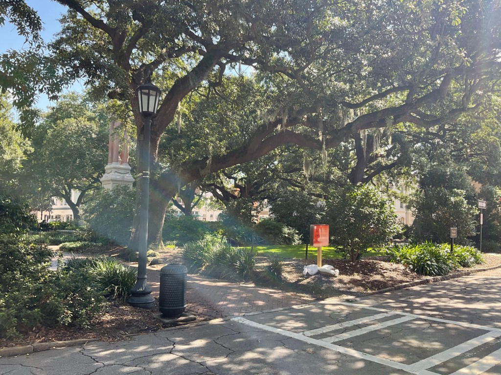 I decided to stop off at the well-known Forsyth Park right in the centre of Savannah on the way to my Guest House. I cycled through it until I reached a cafe in the middle, Collins Quarter, which had one of those fountains behind it where kids scream and shout and get soaked.