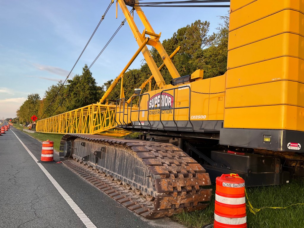 The long section of construction into Jacksonville I was a bit concerned about was not a problem in the slightest. Being Sunday morning, and the 17 being a lesser road with the Interstate so nearby, it was quite deserted again. On this stretch I passed the biggest non-tower crane I think I’ve ever seen.