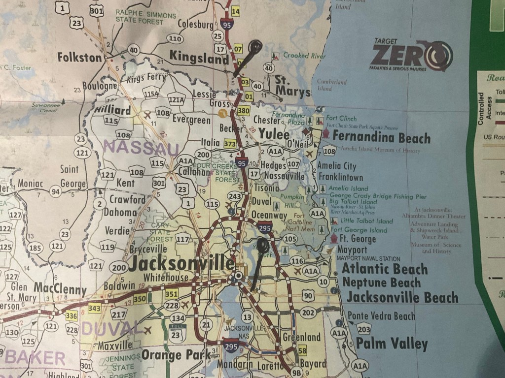 I’d been saying in the ‘comments’ section that I crossed into Florida at 6.30am this morning, but when I checked the photo time stamps I realised that it was actually an hour earlier, 5.20am! Ow. I have two photos to prove it was pre sun-up: