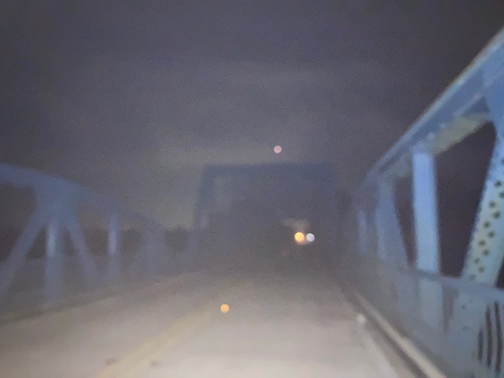 The many rivers the highway crossed this morning became mesmerisingly beautiful once the sun was rising. The water looked so motionless, and there was hardly a breath of wind. The odd thing today was that the sun seemed to take a long time to properly rise, appearing to linger at the horizon for ages, like someone not wanting to get up just yet. I wondered if perhaps this was because I’d become used to having tree cover until around 8.30am, and had been missing this moment? The wetlands were so exposed that the views were stunning, but I also felt relief that I was not doing this ride in full midday sun. 37° was the predicted high again today. I’m not sure what that would register on my ‘in full sun’ wahoo bike computer’s thermometer, and don’t really want to find out. The earliest section of the ride yesterday was 21°, but this morning the equivalent section had gone up by another few degrees, to 24°. It’s amazing how much heat the air and earth can retain, even without the sun’s glare.