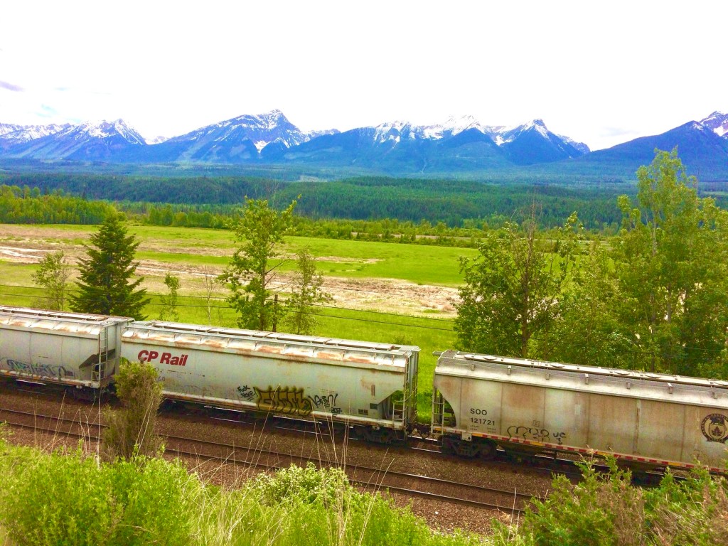 I haven’t had a reaction like that to a ‘sound-your-horn’ request since I passed this mile-long goods train in the Canadian Rocky Mountains near the town of Golden, when the force of the driver’s klaxon nearly blew me off my bicycle.