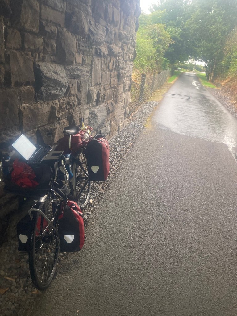 It was only dry for about the first twenty minutes of packing up, then the weather turned. Not windy, not cold, just wet, in a very drizzly Irish sort of a way at first, but heavier later. The only place I found to post yesterday’s blog without soaking everything was under a railway tunnel, on my route for the entire journey, the Waterford Greenway.