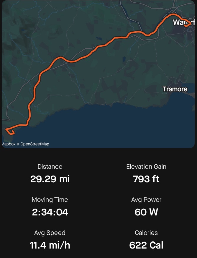 After my day off I was now turning back in a return loop towards the ferry at Rosslare. Stage one was to Waterford, then stage two would take me back to IOAC Camping in Tagoat. My ferry home is booked for Wednesday morning.