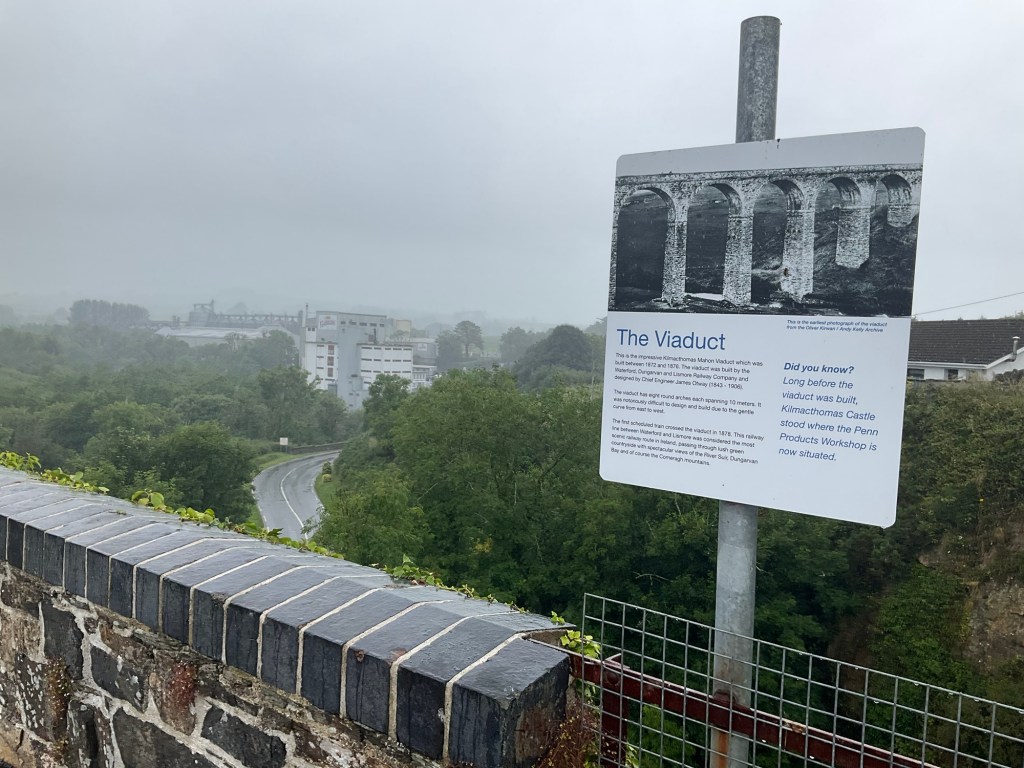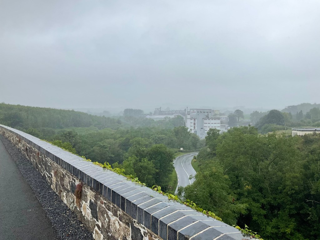 I saw from my weather app that heavy rain was coming in from the sea, so I got moving and made a big effort on the last 20km stretch to Waterford (all distances are given in km here). I had to dismount when I got to Kilmeadan Station, the start of the Waterford Suir Valley Railway, which runs alongside the Greenway for a few miles beside the River Suir. You can see from the great speed the train travels at in the video below that it was a superhuman effort, especially in the now-heavy rain, to catch and then overtake it, but somehow I managed it. As I passed the engine cab, I waved and gave the driver the arm-pump sign for ‘sound your horn’, and he surprised me by responding with a proper salvo of blasts, to the rhythm of ‘Shave-and-a-haircut, two-bits!’, hanging on to the last note like the end of a mighty symphony.