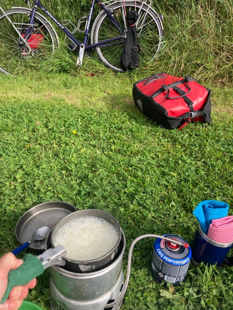 I’m now at the campground in Tagoat a few miles from the ferry, writing this by a lake as the swifts swoop across the water and then swerve around the Irish kids playing table tennis with a full size football. I do like camping.