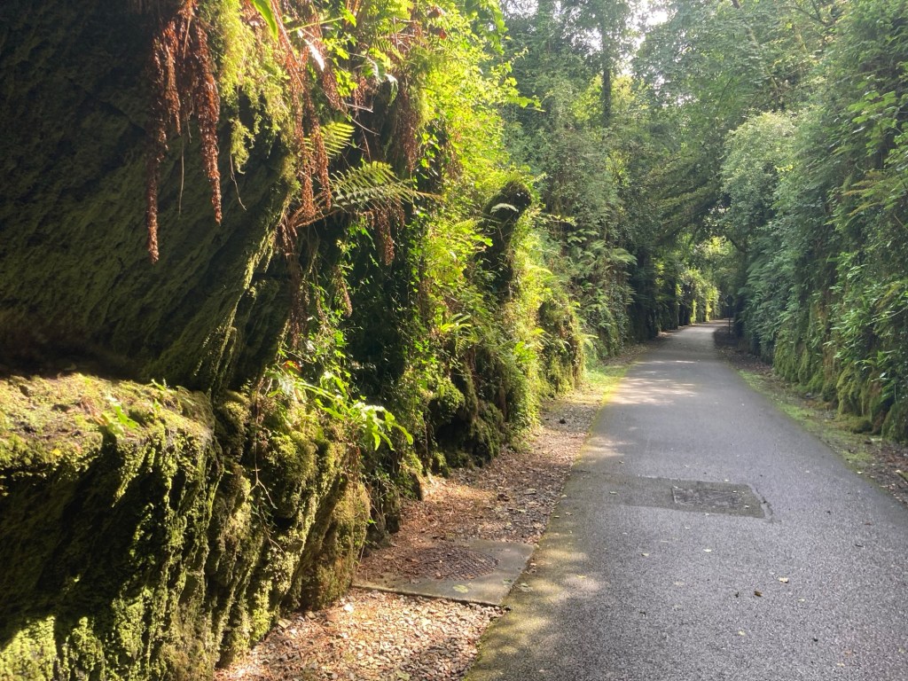 But with the sun out it was glorious. Possibly the two highlights were the verdant, dripping rock wall after a long tunnel, and the moment you suddenly see the ocean ahead, just before arriving at Clonea Beach.